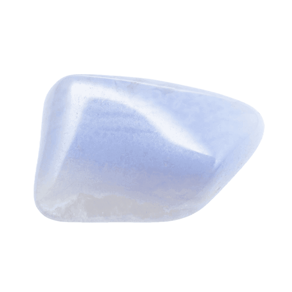 Properties Blue Chalcedony is a soft, translucent blue stone with a smooth and waxy texture. It resonates with the throat chakra, supporting honest expression and a calm, centered mind.