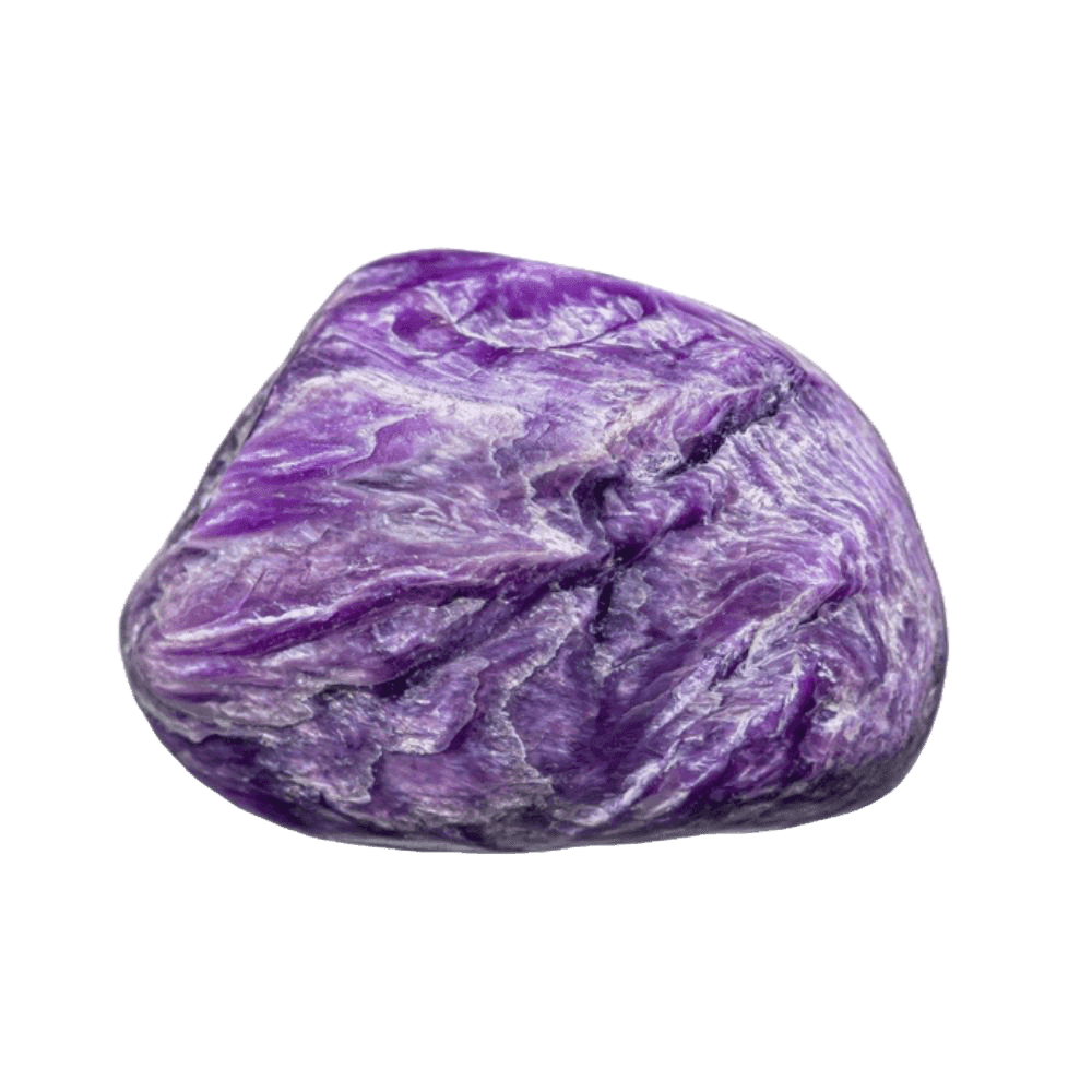 Properties Charoite is a rare purple stone with swirling patterns of violet, lavender, and black. It resonates with the third eye and crown chakras, aiding in spiritual awareness and inner vision.